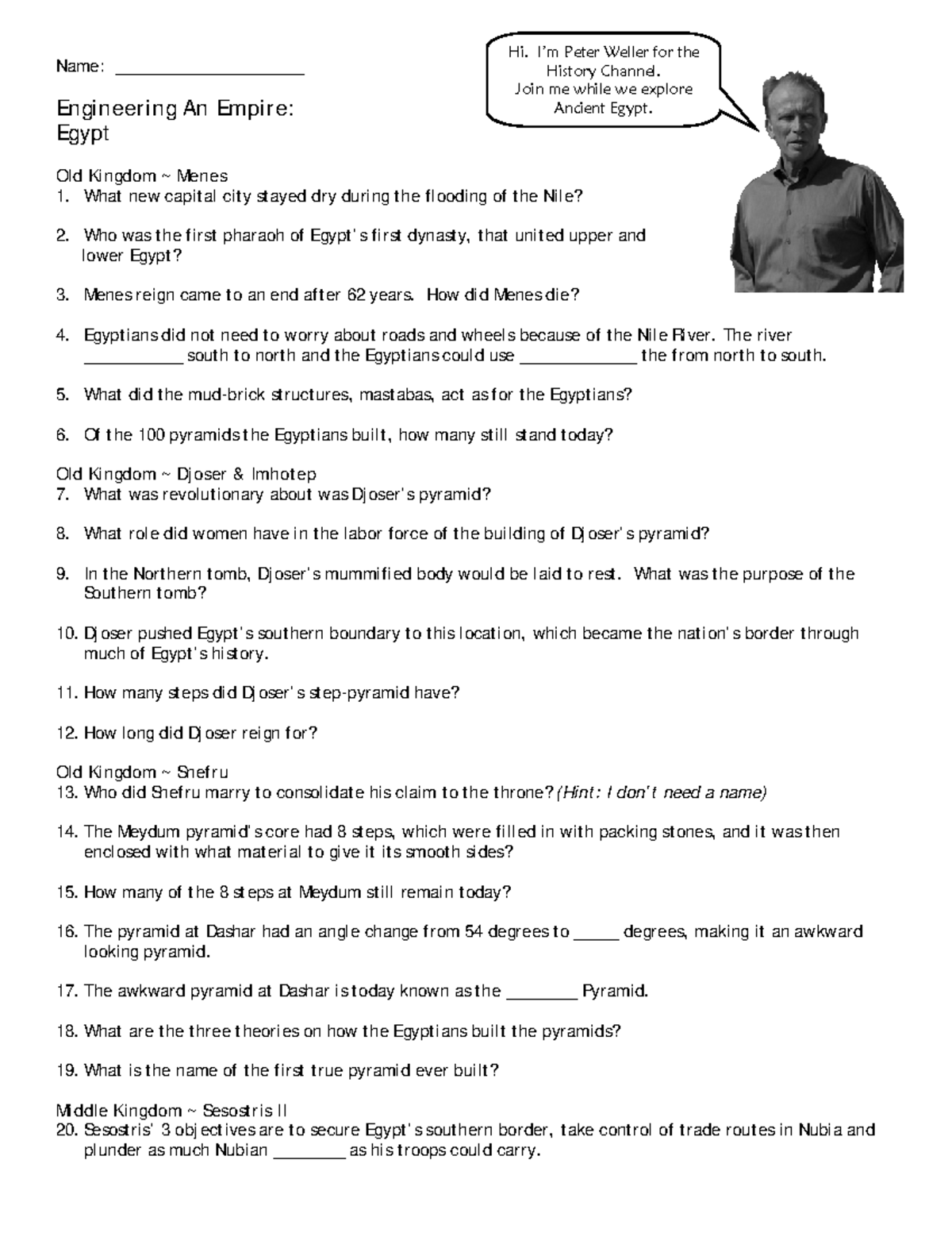 Engineering An Empire Egypt Worksheet