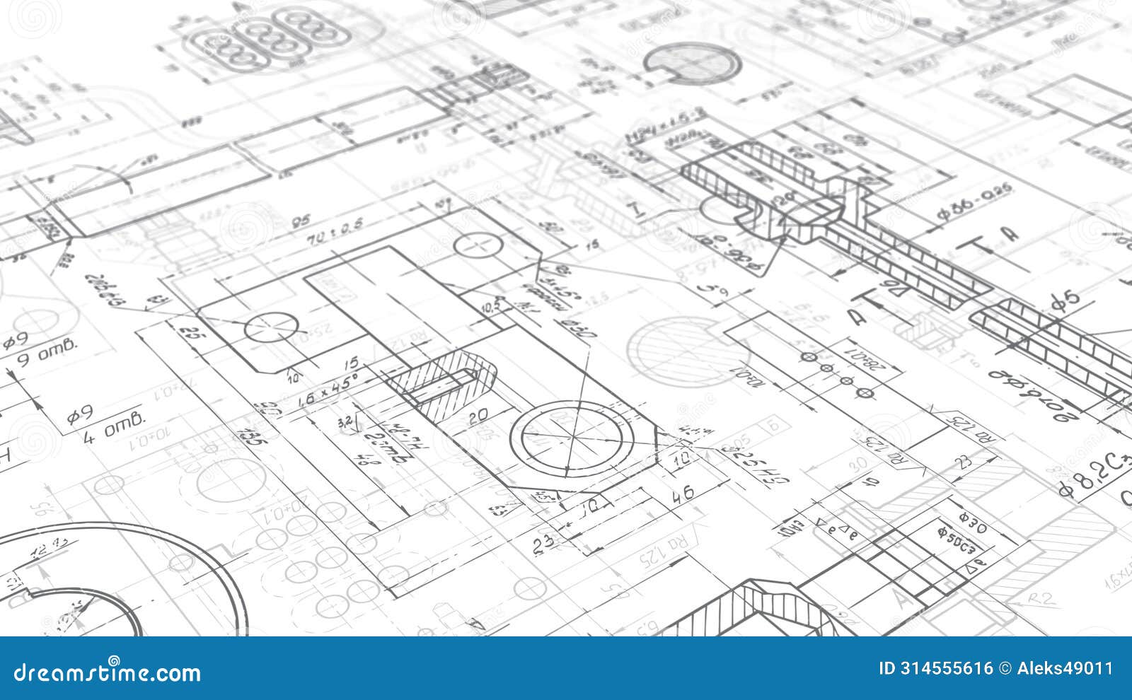 Technical drawing background Mechanical Engineering drawing Stock