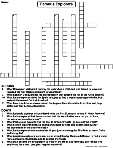 Famous Explorers Crossword Puzzle Teaching Resources