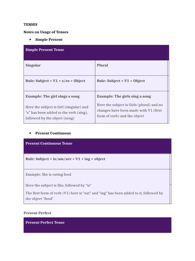 Tenses Worksheet for Class 8 Perfectyourenglish com