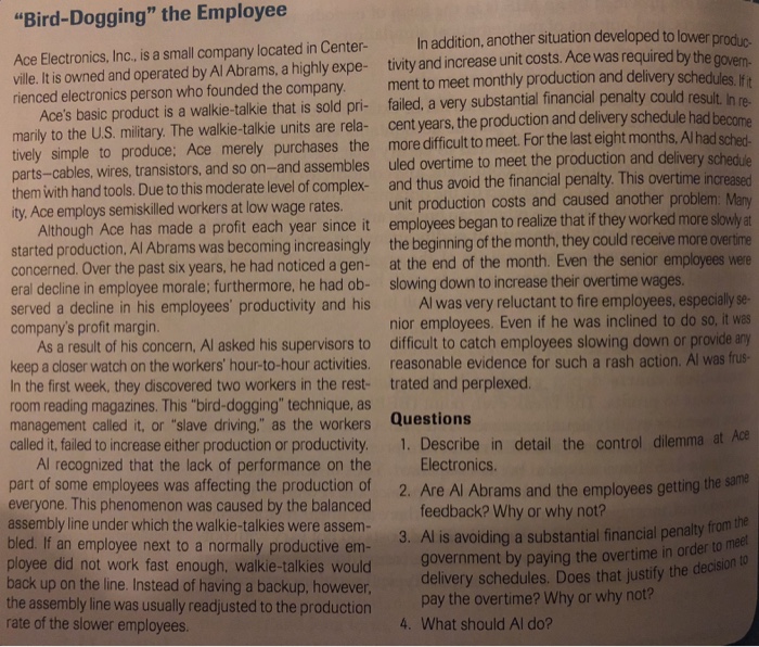 Solved quot Bird Dogging quot the Employee Ace Electronics Inc is Chegg com