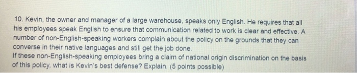 Solved 10 Kevin the owner and manager of a large Chegg com