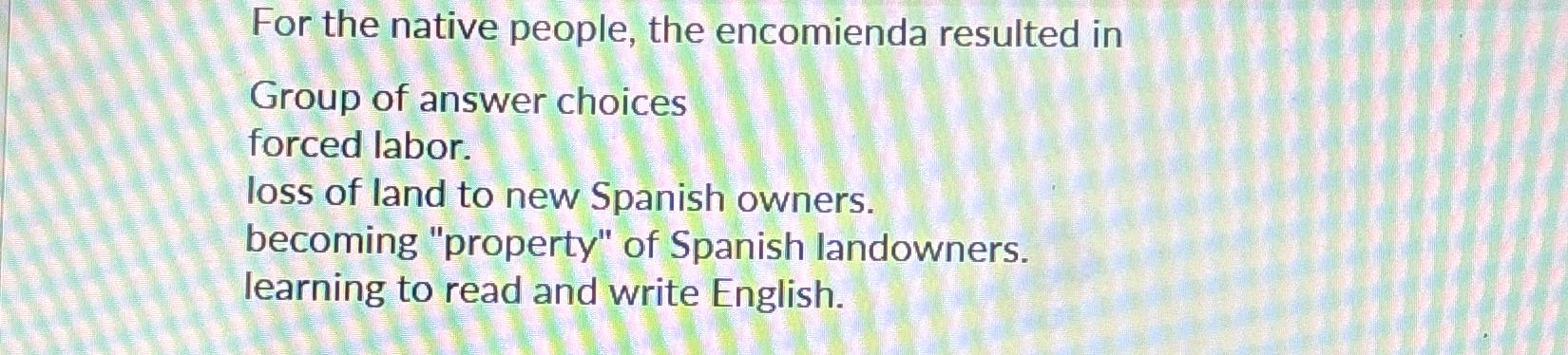 Solved For the native people the encomienda resulted Chegg com