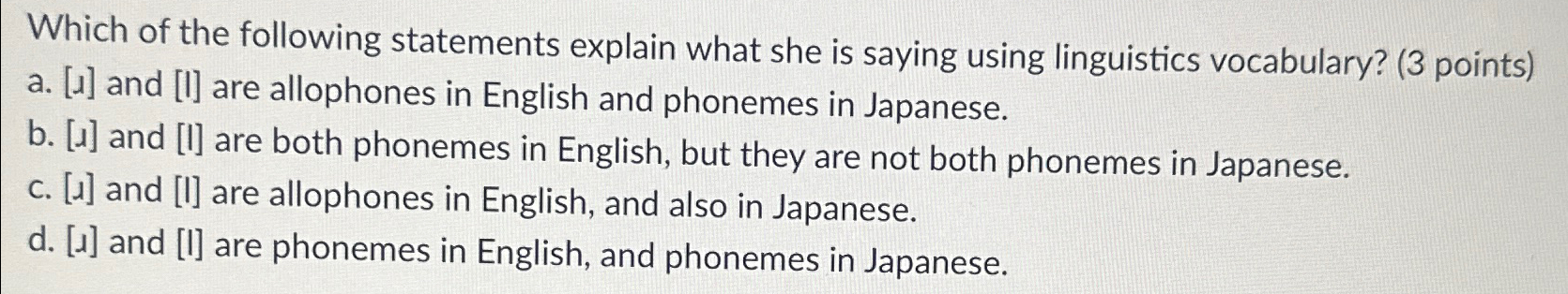 Solved Which of the following statements explain what she is Chegg com