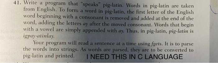 Solved 41 Write a program that quot speaks quot pig latin Words in Chegg com