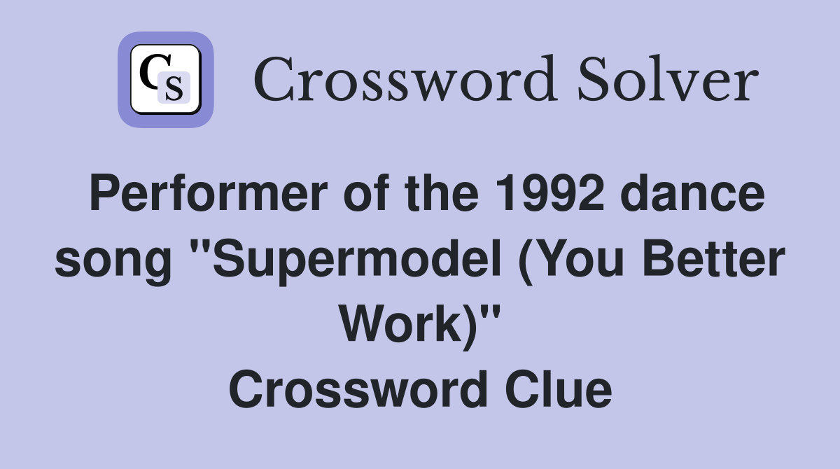 Performer of the 1992 dance song quot Supermodel (You Better Work