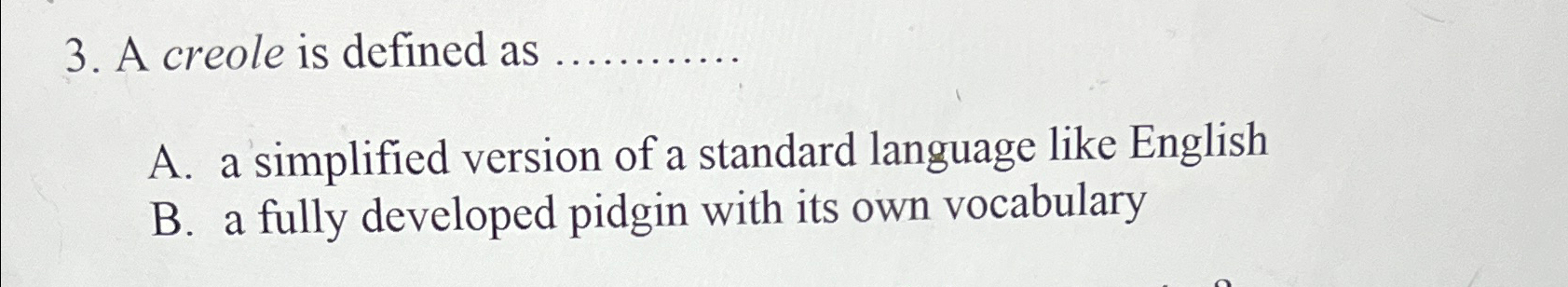 Solved A creole is defined asA a simplified version of a Chegg com