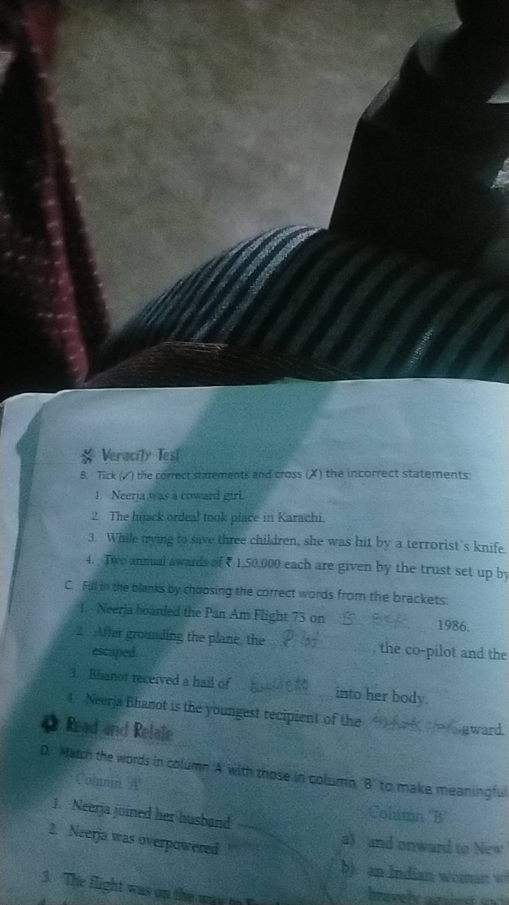 ₹ै Veracily Test 8 Tick (n the cortect statements and cross (x) the inco