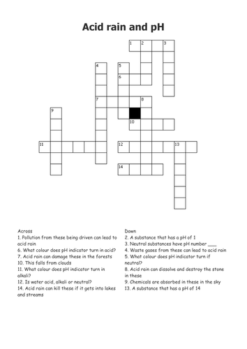 Acid rain crossword Teaching Resources