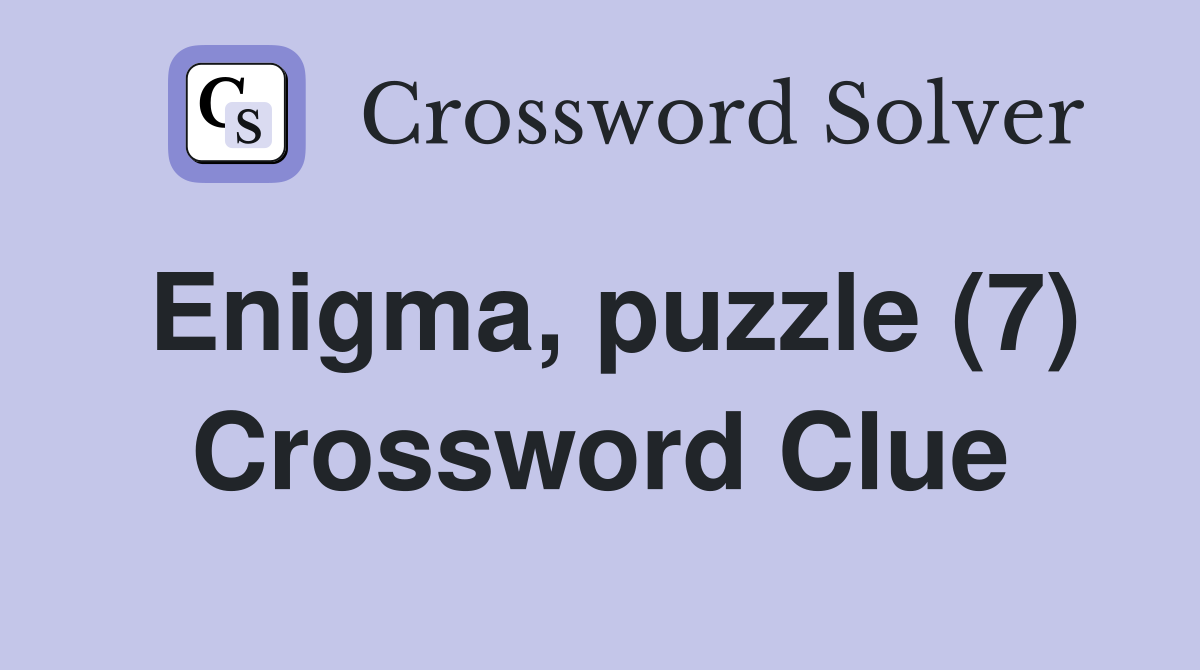 Enigma puzzle (7) Crossword Clue Answers Crossword Solver