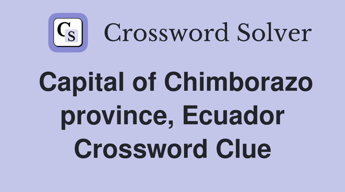 Capital of Chimborazo province Ecuador Crossword Clue Answers
