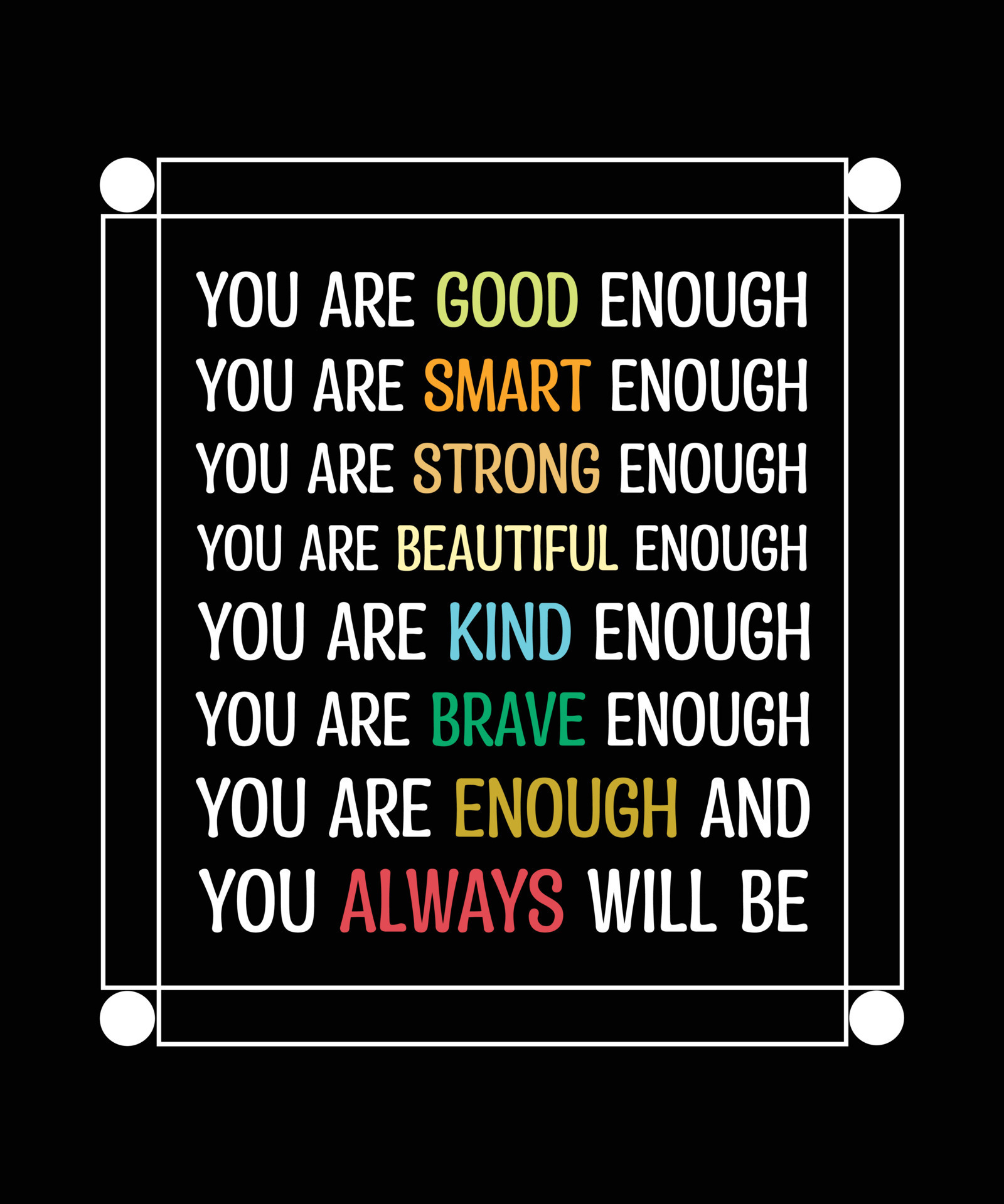 YOU ARE ENOUGH GOOD SMART STRONG BEAUTIFUL KIND BRAVE YOU ALWAYS