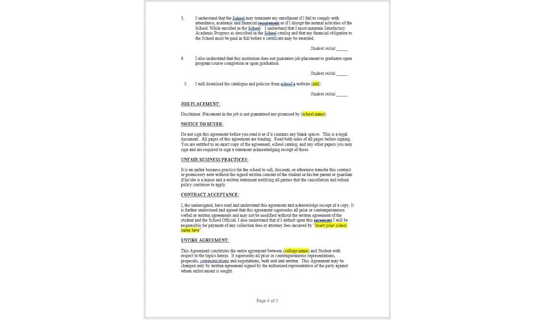 Here are some of the images for Enrollment Agreement Template that we found in our website database.