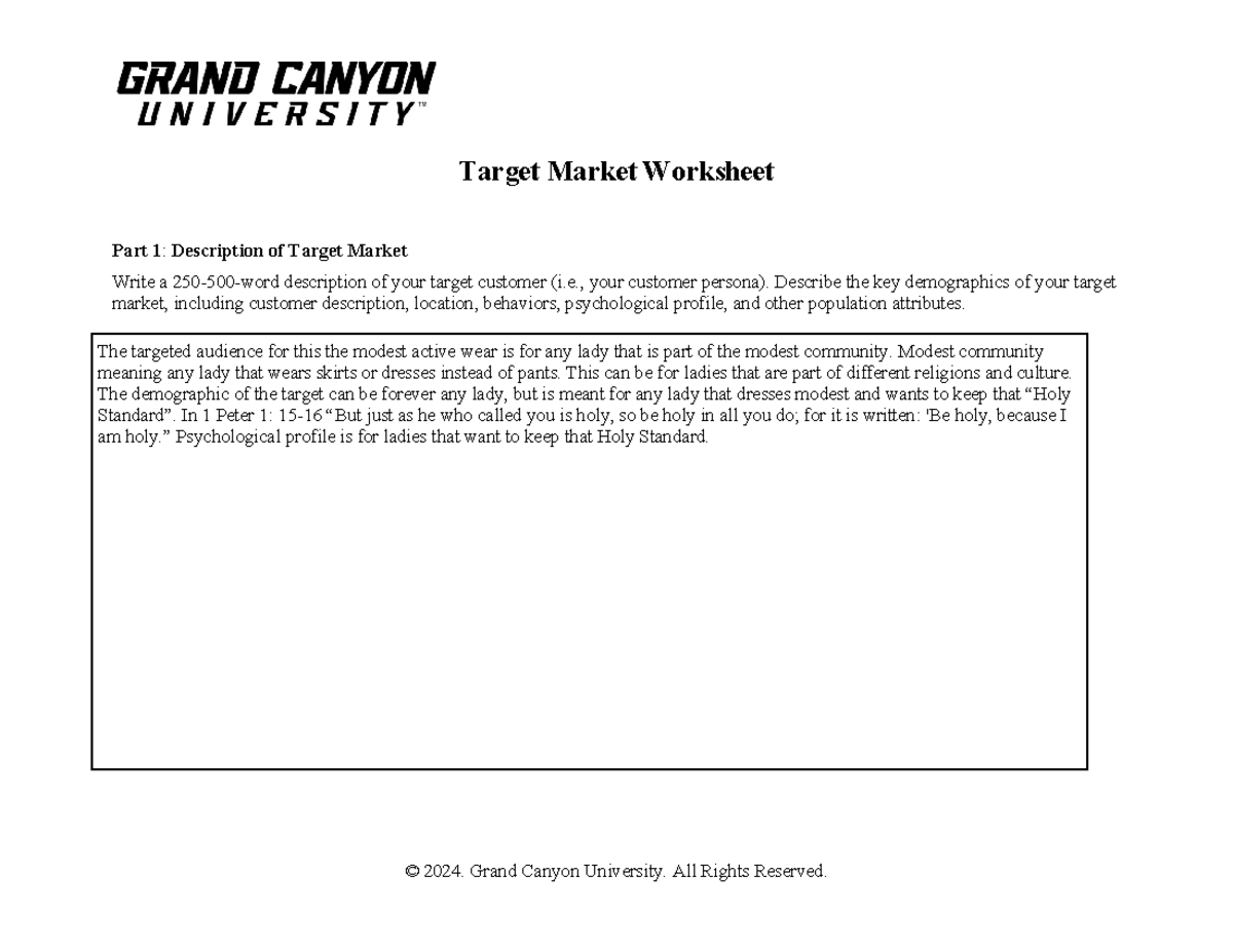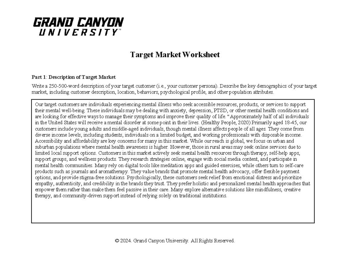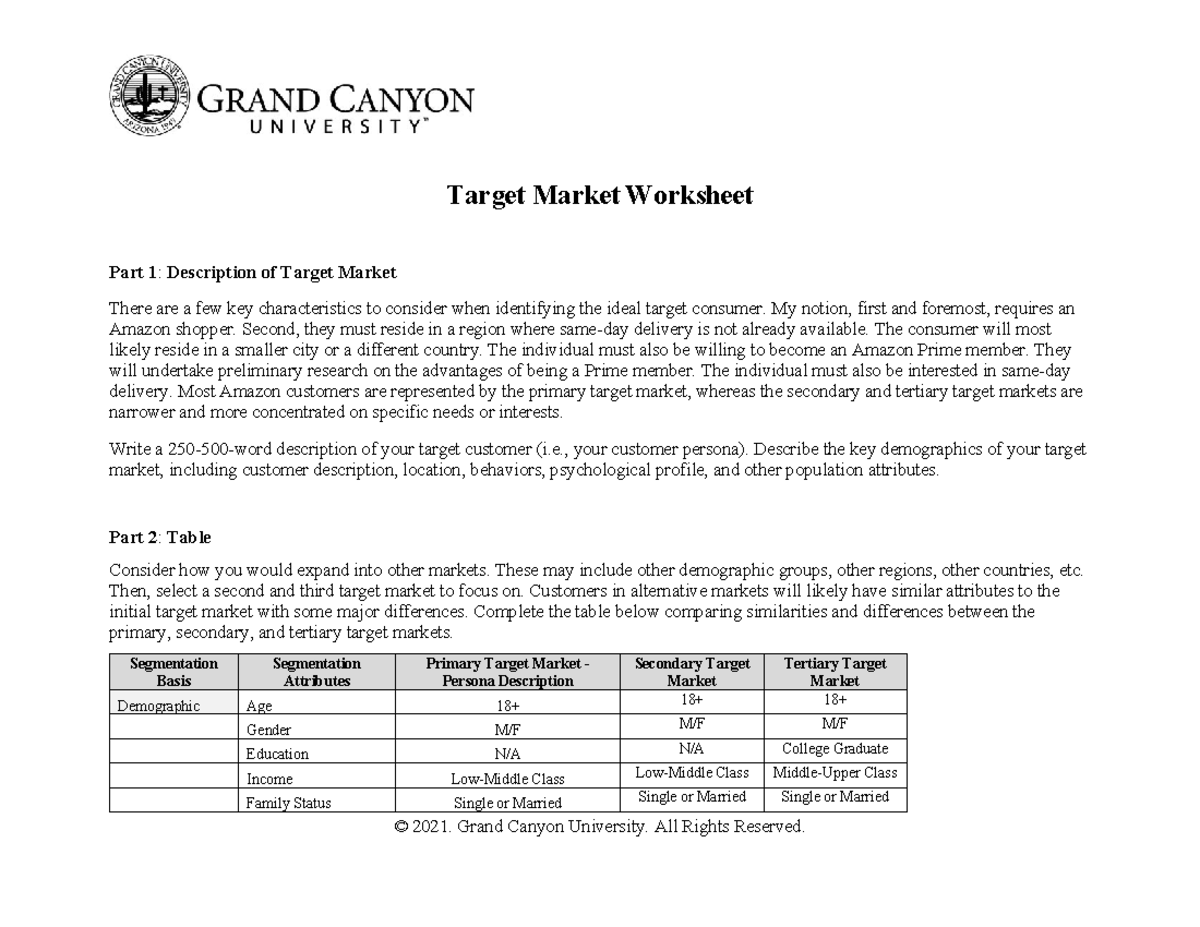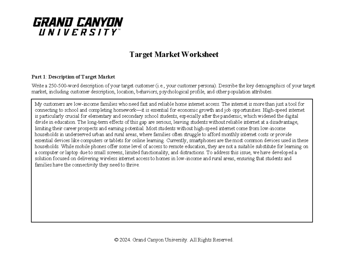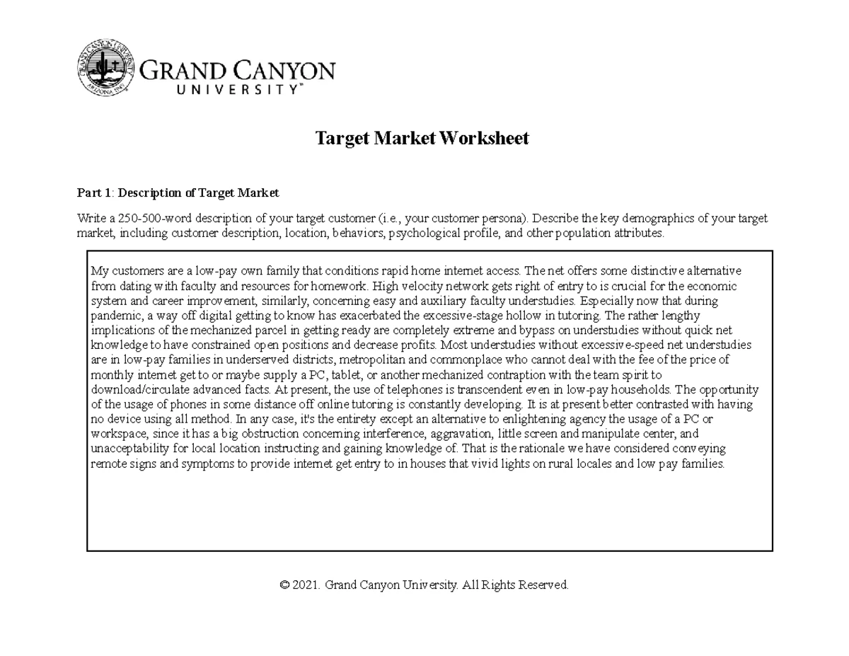 ENT 436 RS T4 Target Market Worksheet 2 © 2021 Grand Canyon