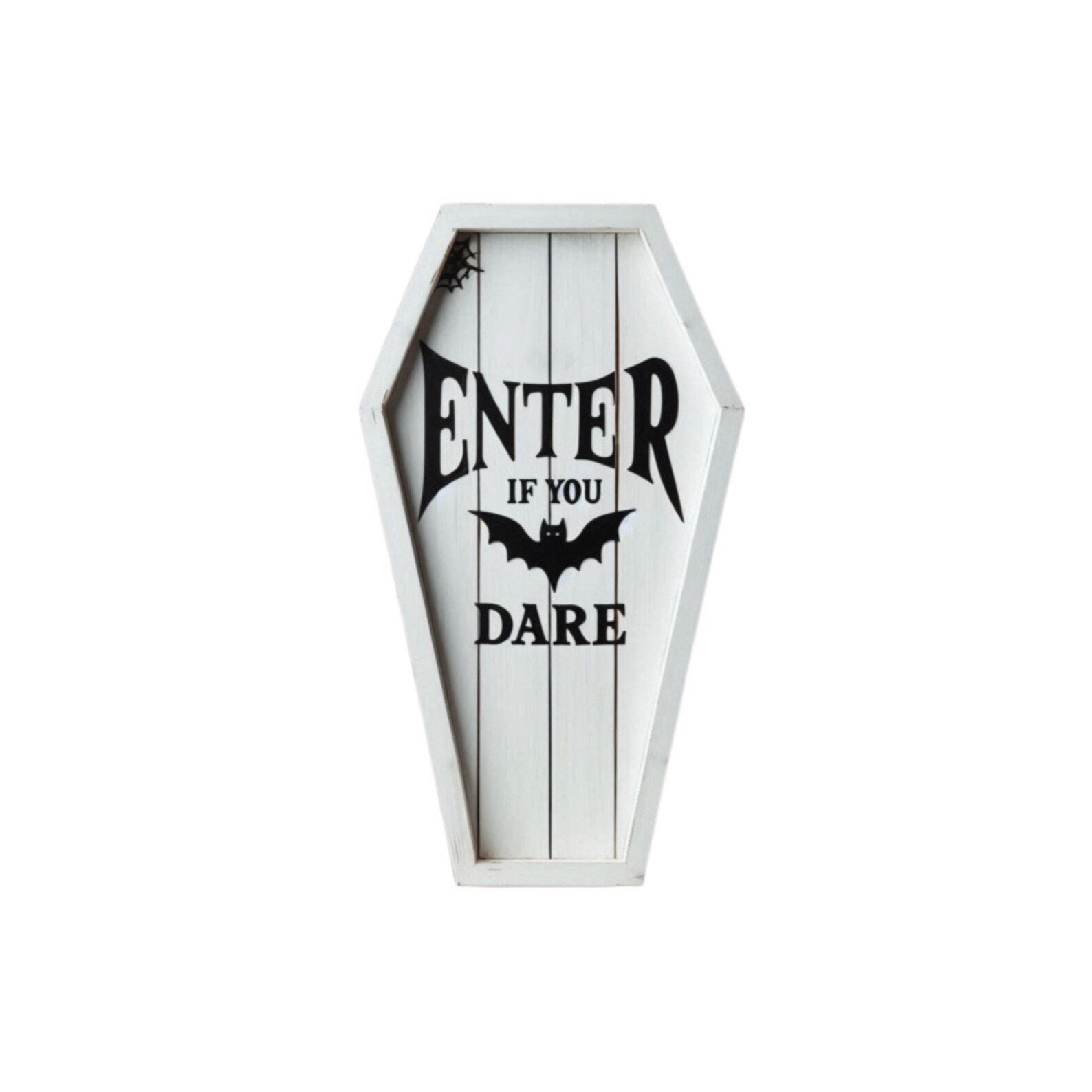 Enter If You Dare White Coffin Wood Sign Spooky Gothic Halloween