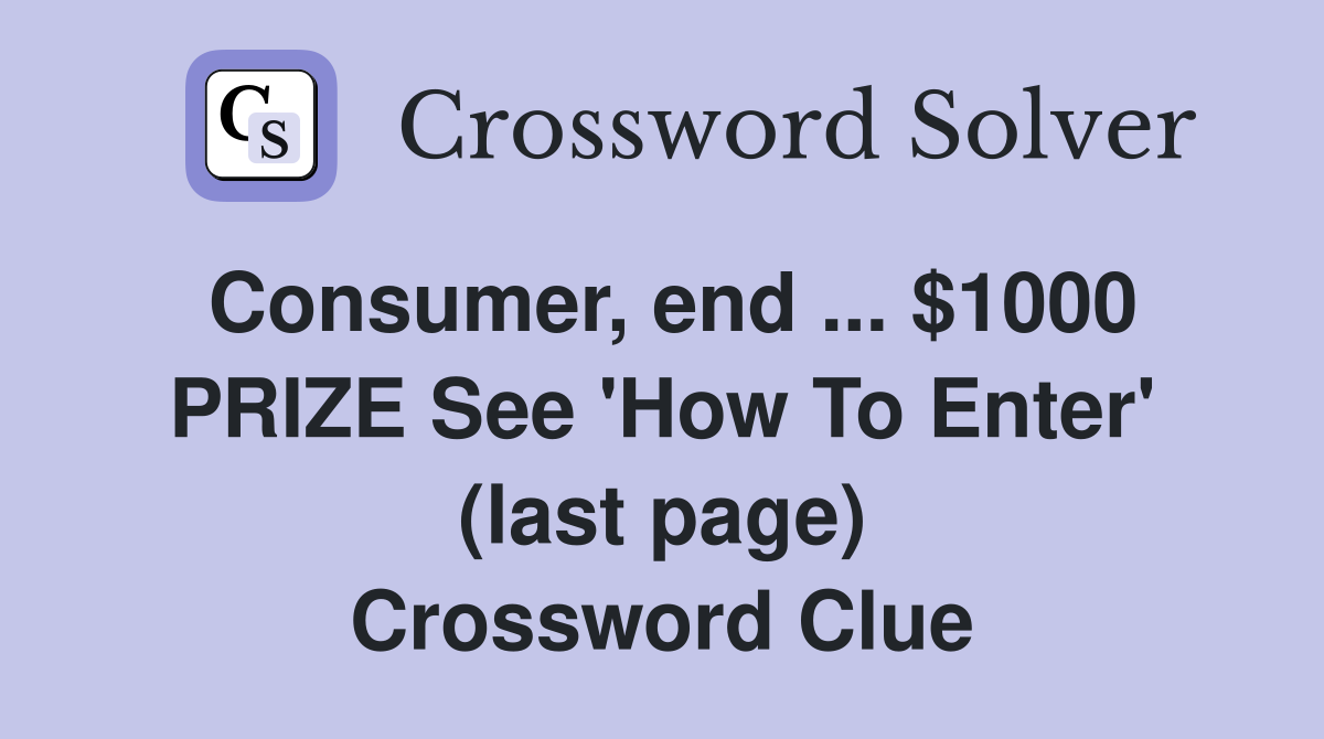 Consumer end $1000 PRIZE See #39 How To Enter #39 (last page