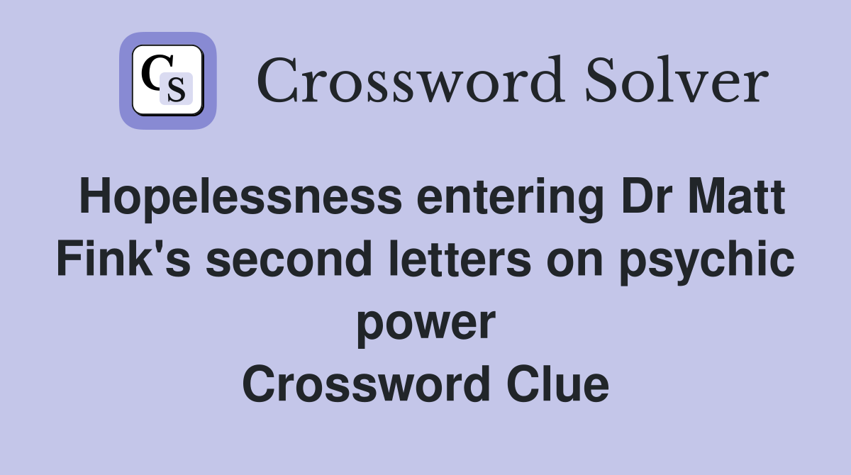 Hopelessness entering Dr Matt Fink #39 s second letters on psychic power