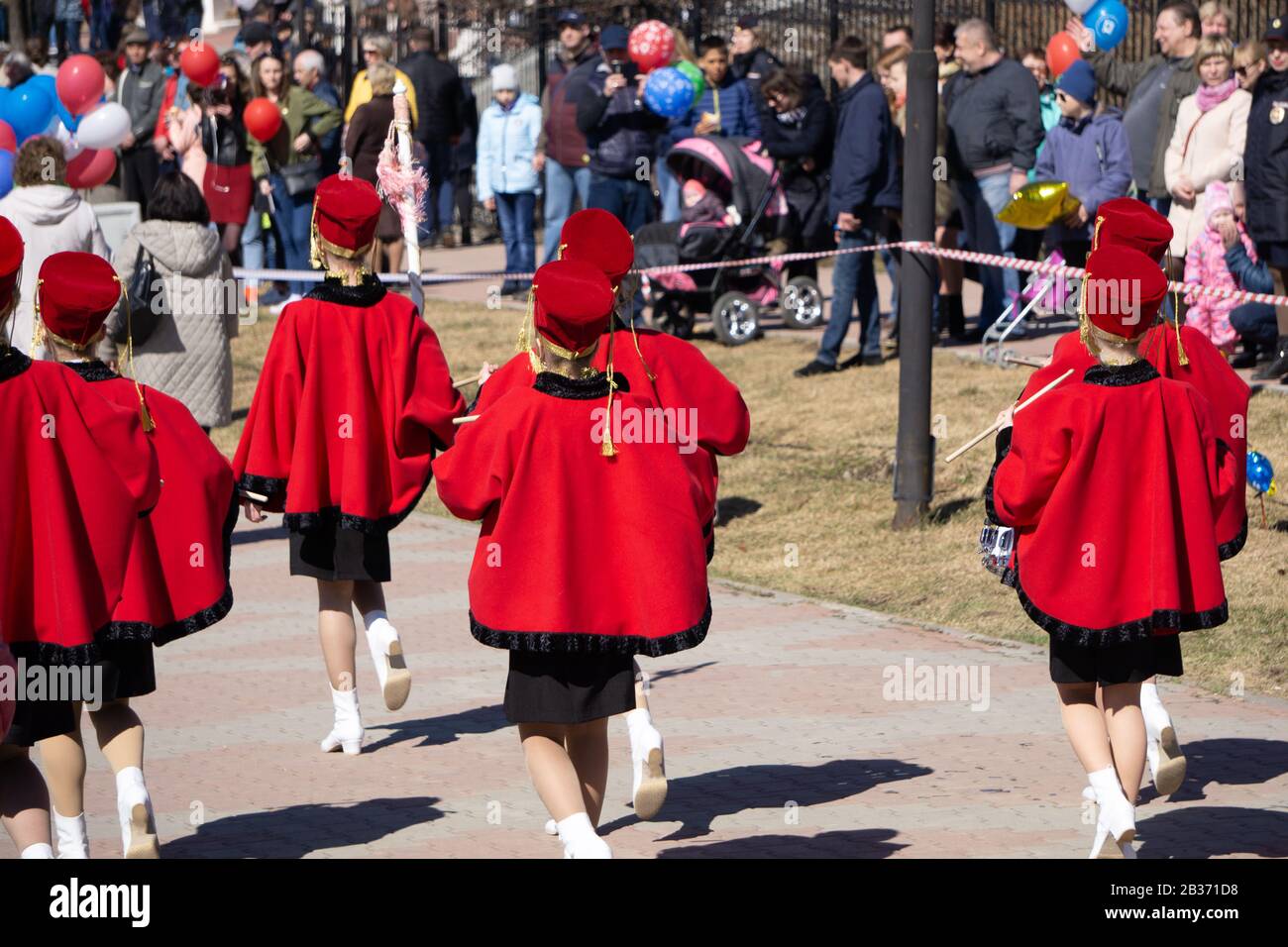 band entertain the crowds at the annual in red clothing with drums