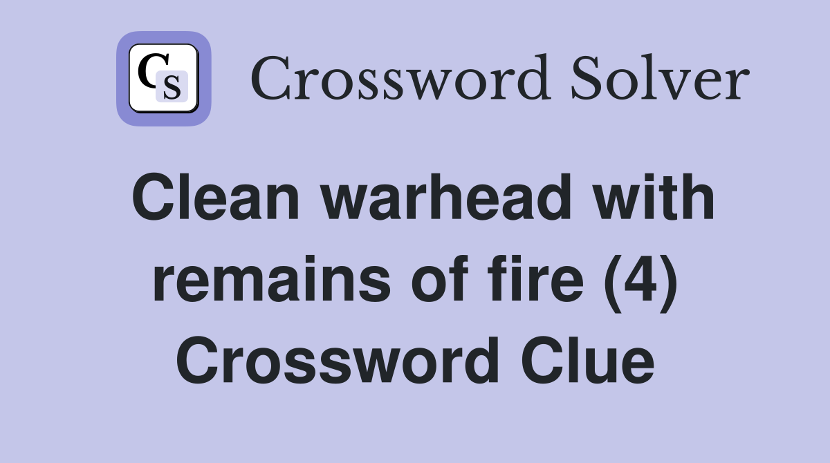 Clean warhead with remains of fire (4) Crossword Clue Answers