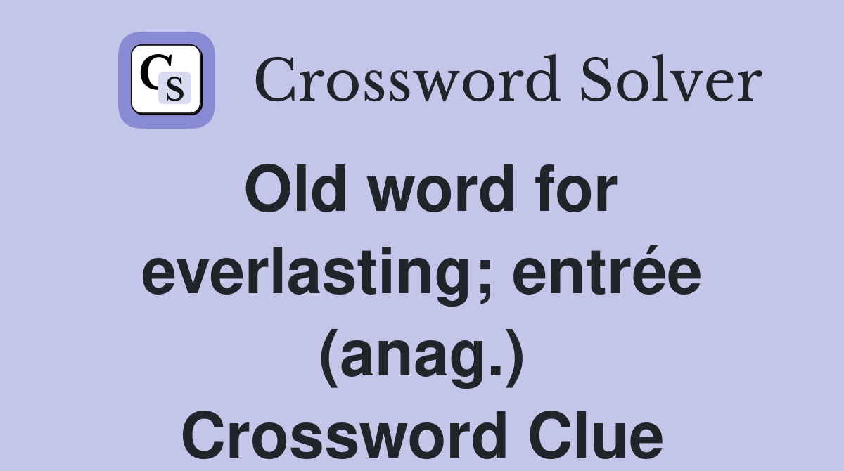 Old word for everlasting entrée (anag ) Crossword Clue Answers