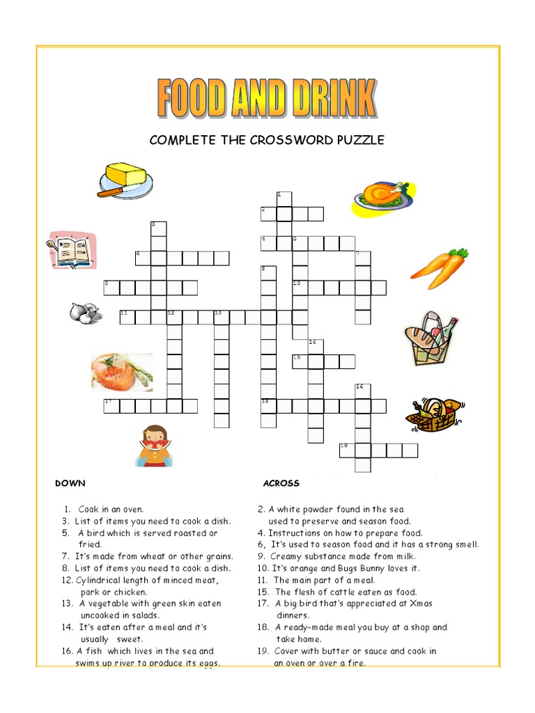 50 Food Crossword Puzzles with Answers ProProfs Games