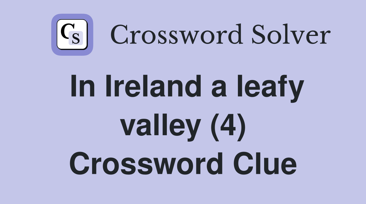 In Ireland a leafy valley (4) Crossword Clue Answers Crossword Solver