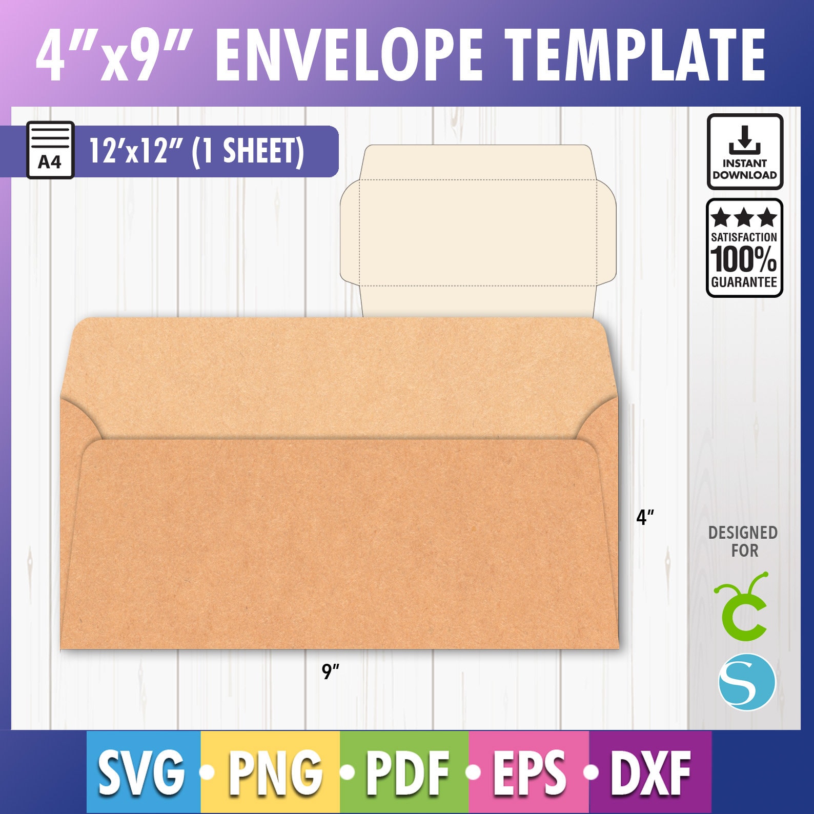 Envelope Template SVG 4 quot x9 quot Envelope Png PDF Printable Letter