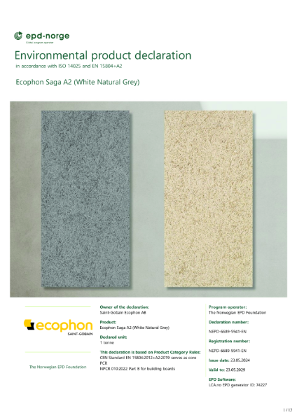 Saga A2 Environmental Product Declaration Certificate Saint Gobain