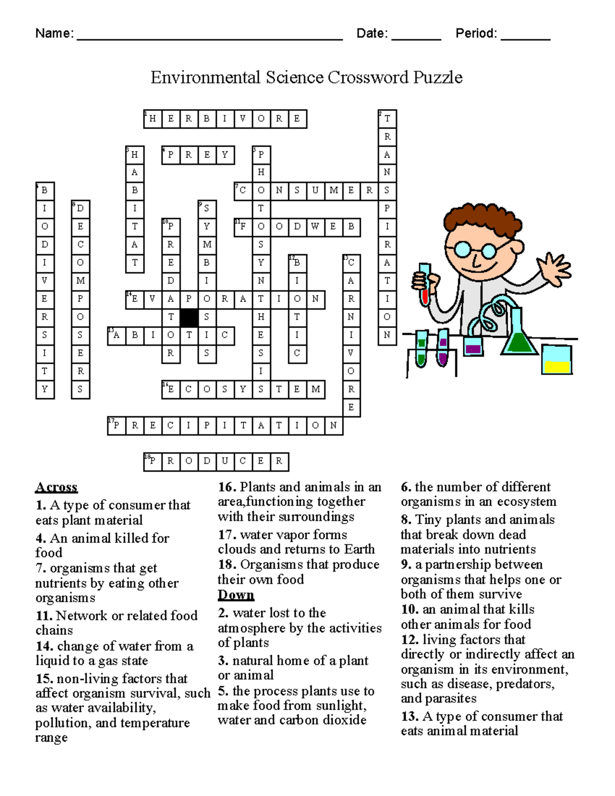 Environmental Science Crossword Puzzle Answer Key prntbl