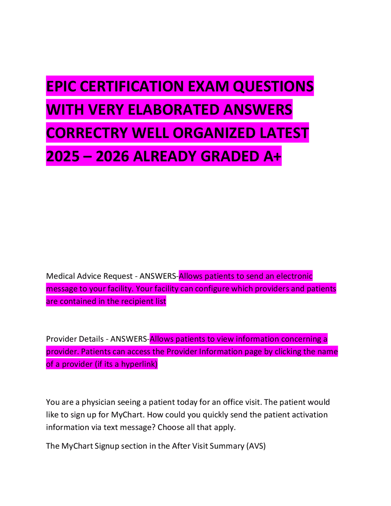 EPIC CERTIFICATION EXAM QUESTIONS WITH VERY ELABORATED ANSWERS Exams
