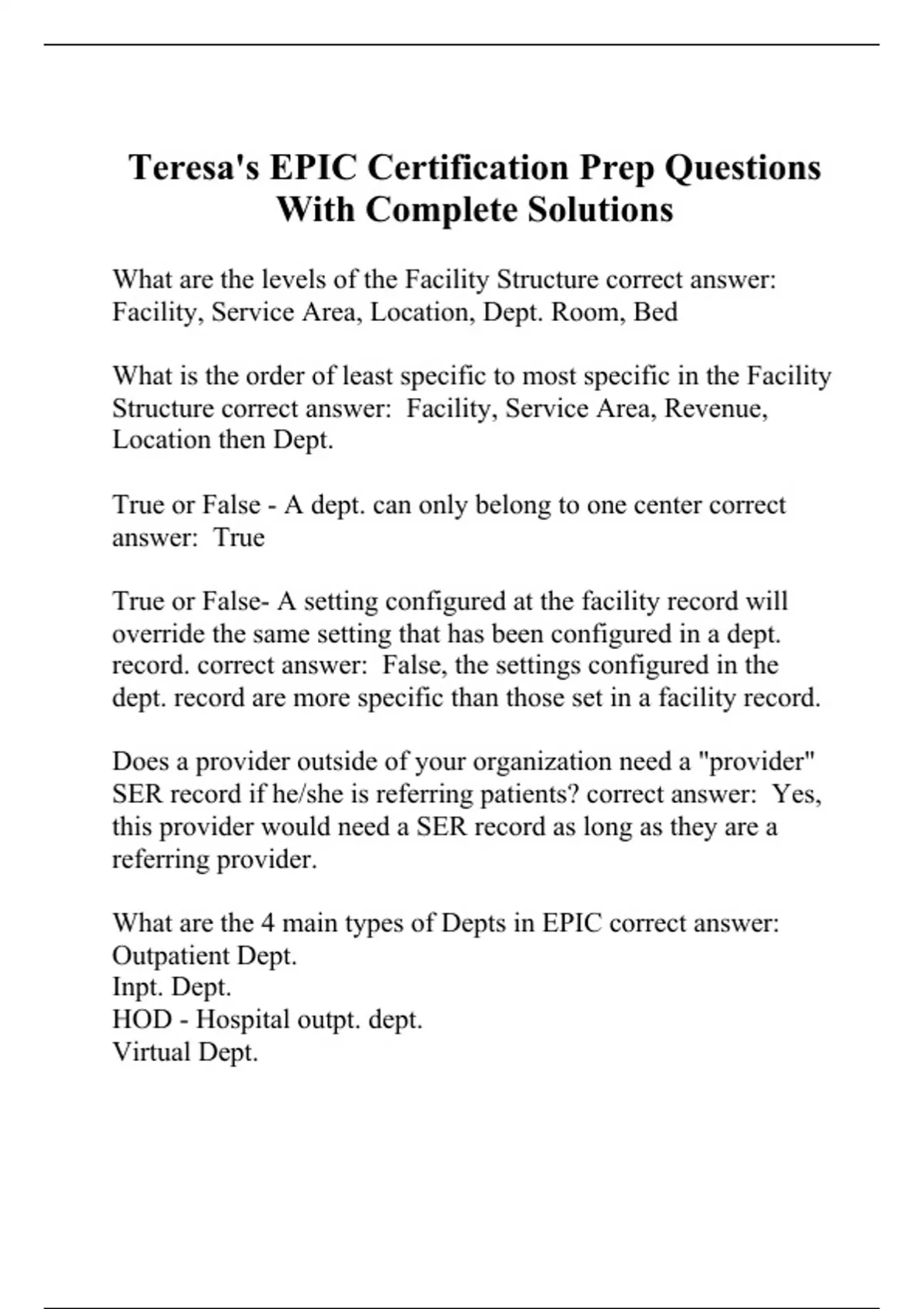 Teresa #39 s EPIC Certification Prep Questions With Complete Solutions