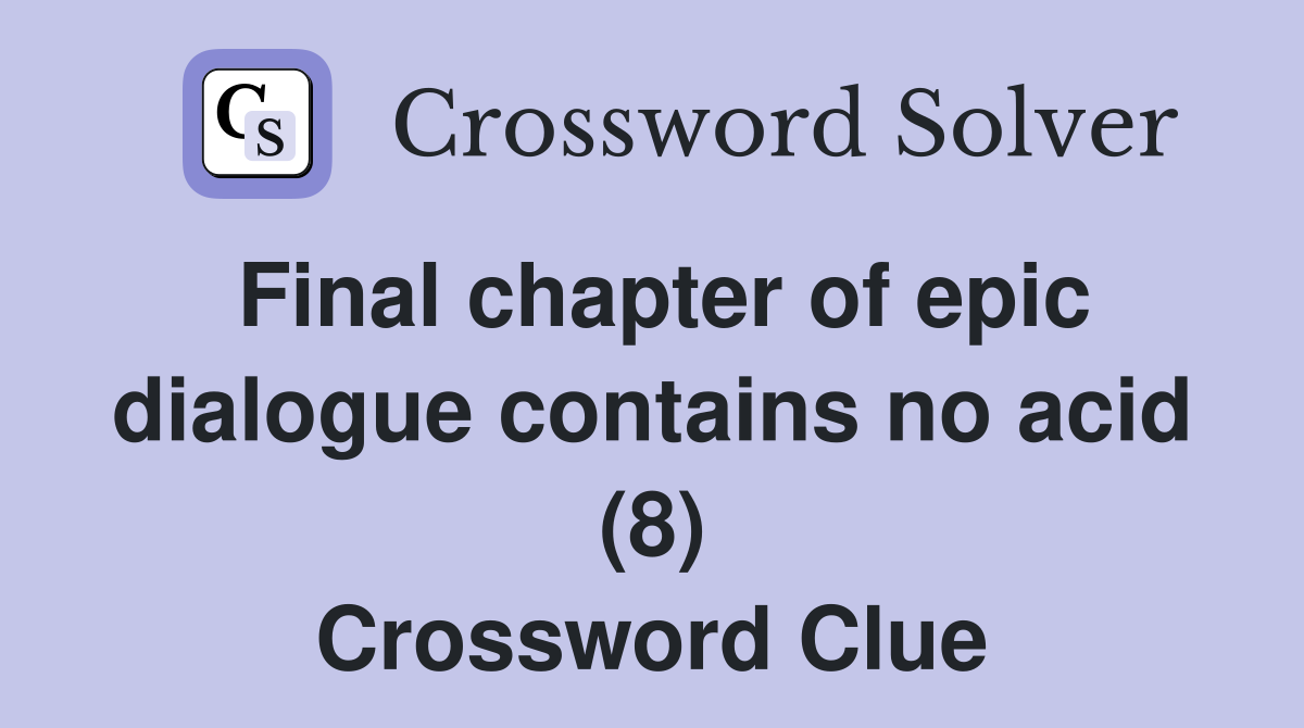 Final chapter of epic dialogue contains no acid (8) Crossword Clue