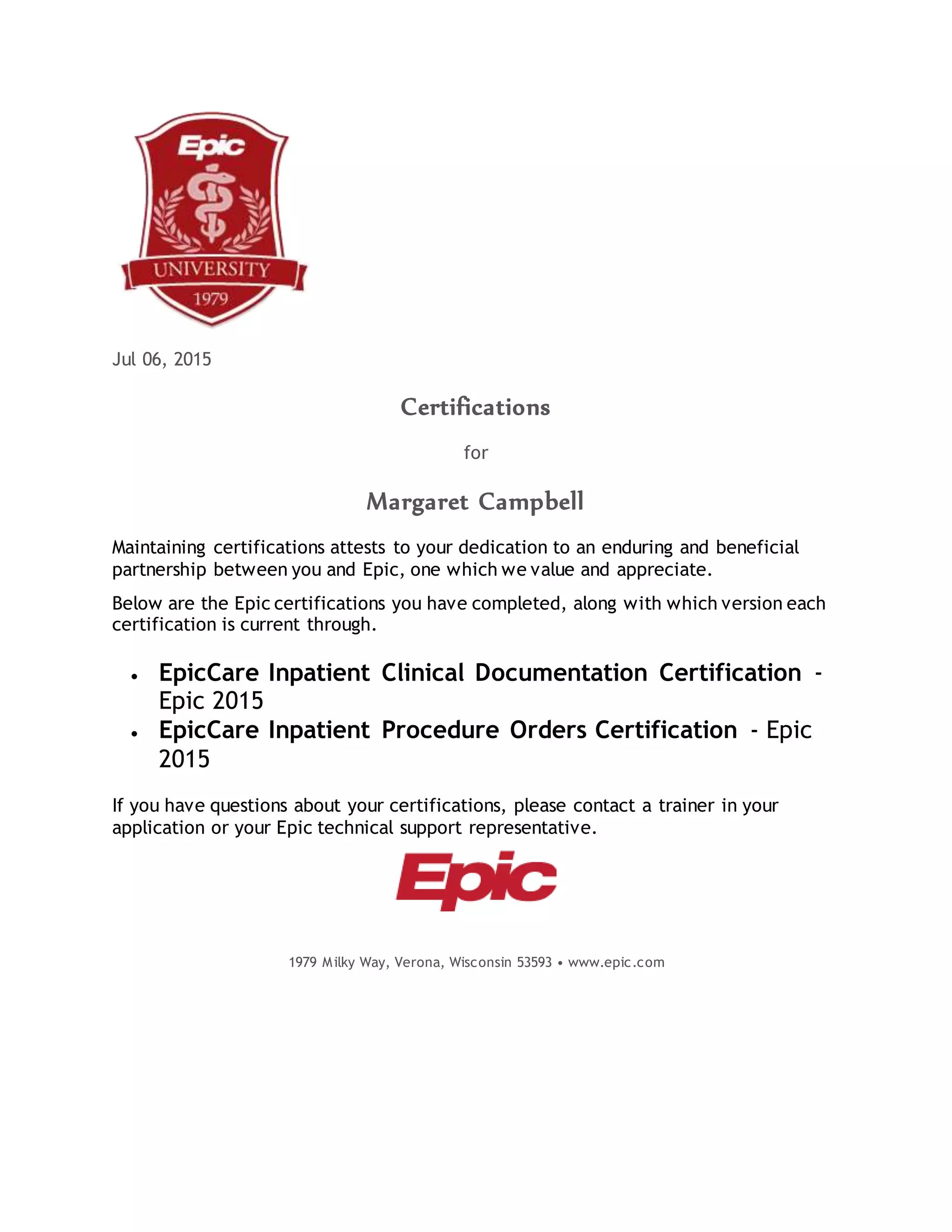EpicCare Inpatient Clinical Documentation Certification PDF