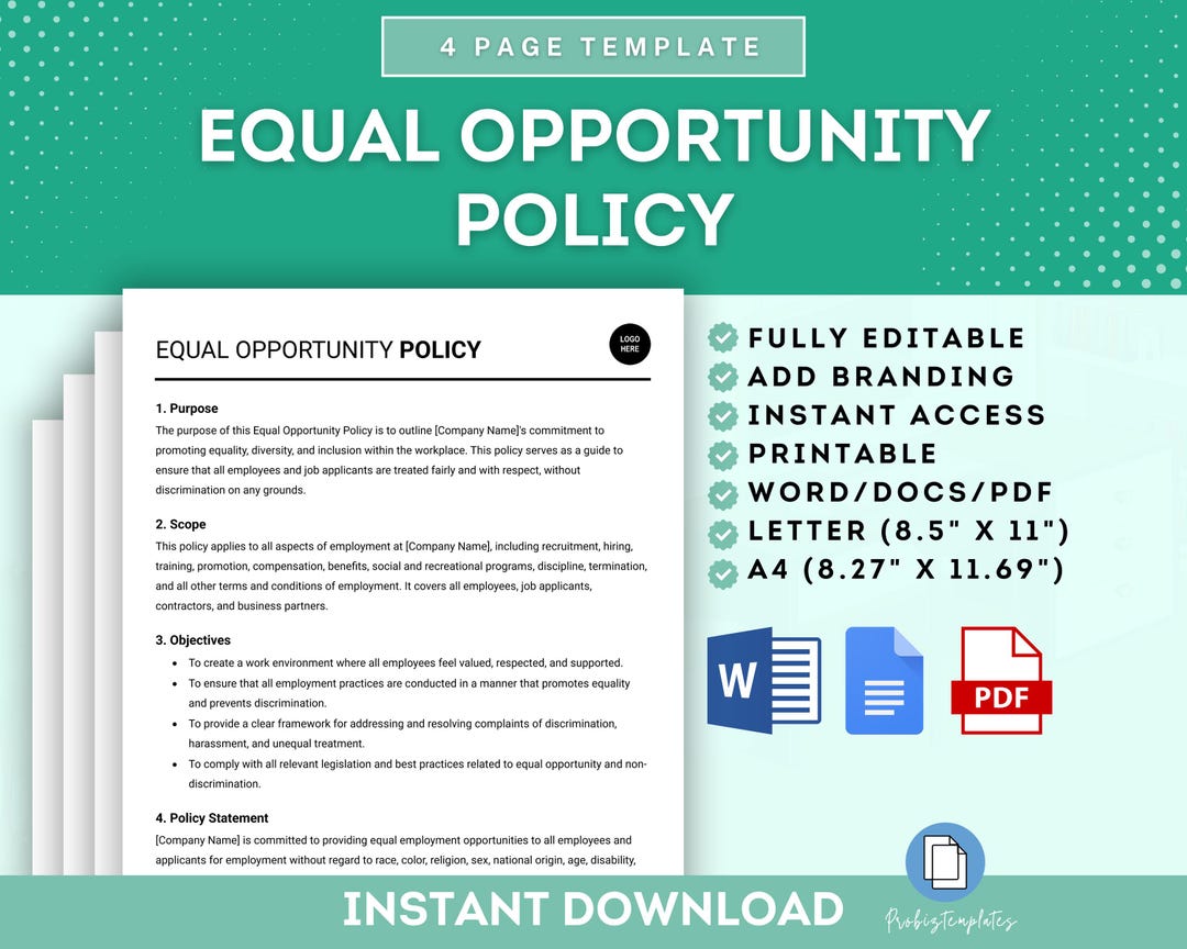 Equal Opportunity Policy Template (Word PDF) Free Trial