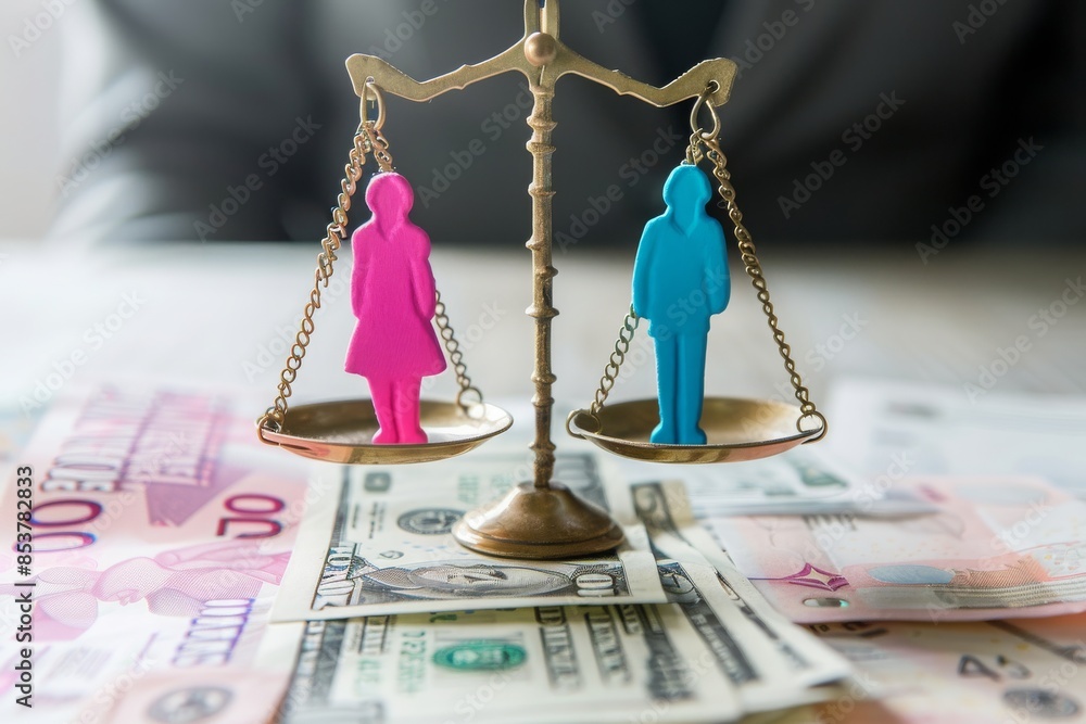 ?oncept of Gender Equality Scales with Pink Female Figure and Blue