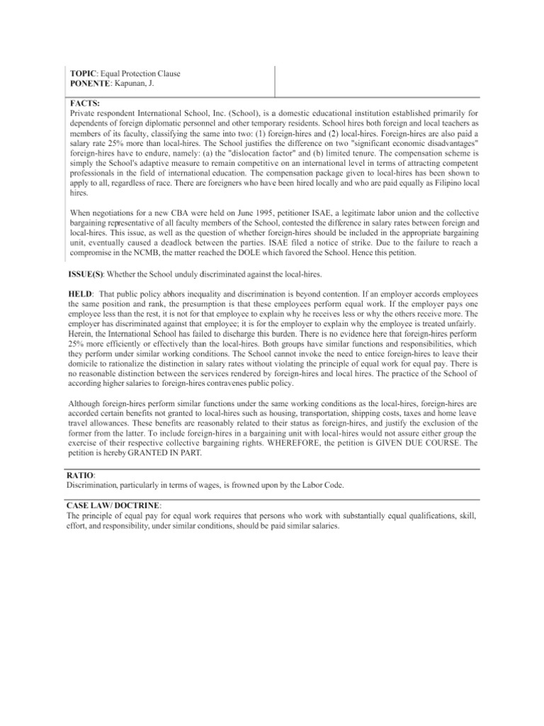 EQUAL PROTECTION CLAUSE CASES PDF