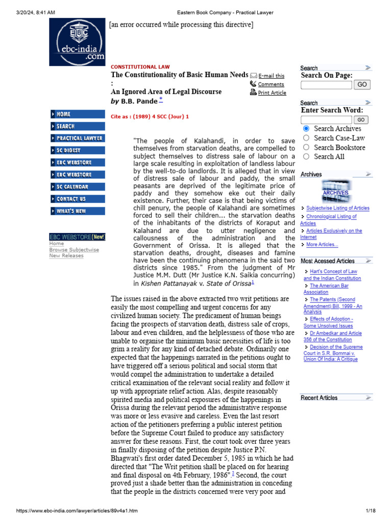 The Constitutionality of Basic Human Needs An Ignored Area of Human
