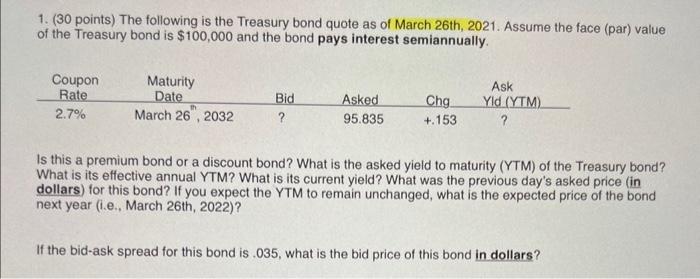 Solved 1 (30 points) The following is the Treasury bond Chegg com