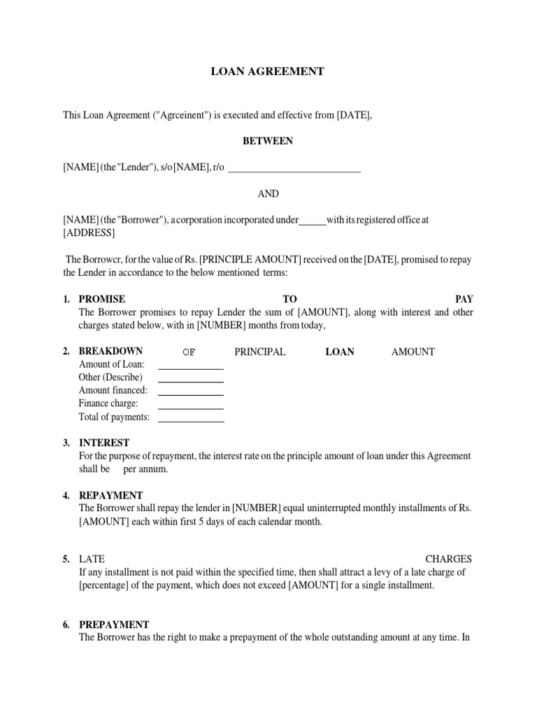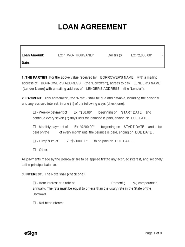 Loan Agreement Template PDF Interest Loans
