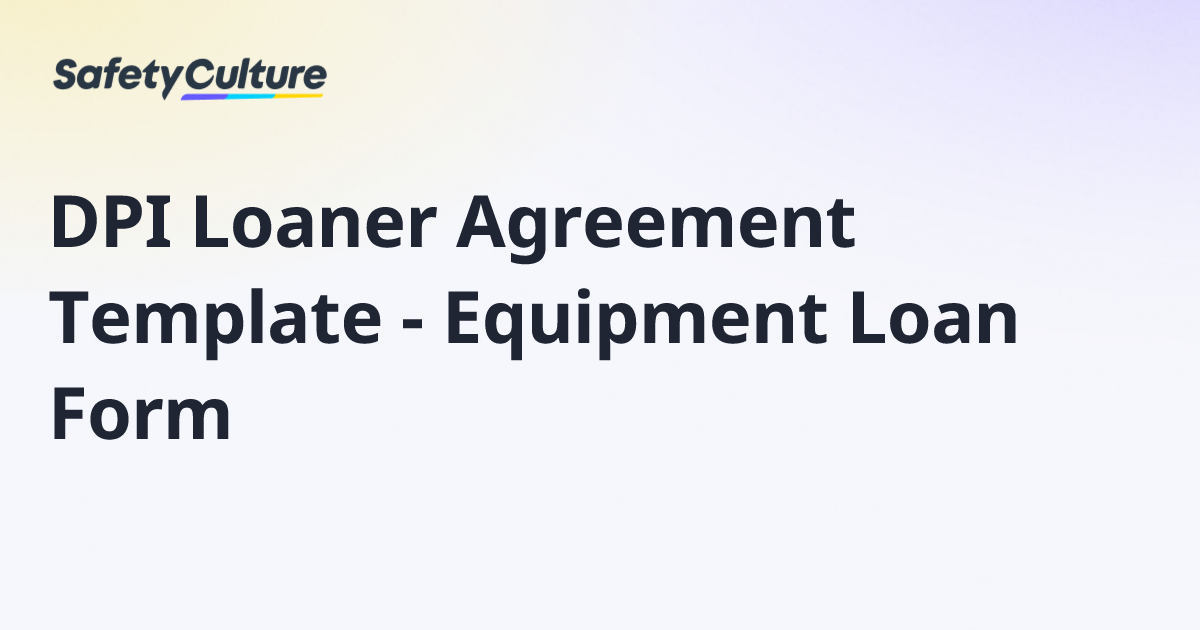 DPI Loaner Agreement Template Equipment Loan Form Free Template