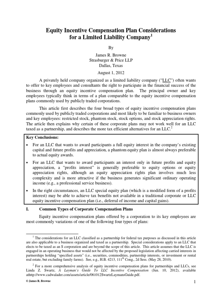 Equity Incentive Compensation Plans For An LLC PDF Employee Stock