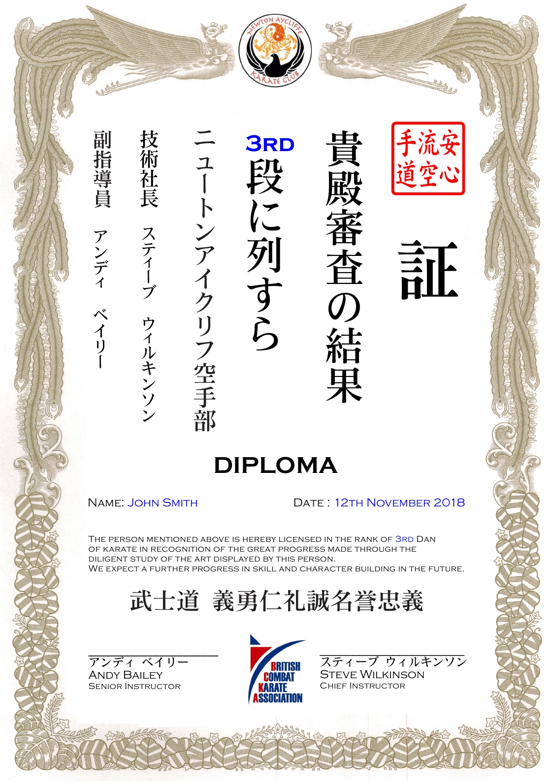 Nafuda Hanko and Inkan: A3 Dan Certificate template for NAKC
