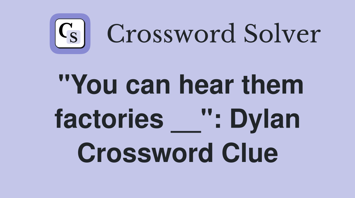 #39 #39 You can hear them factories #39 #39 : Dylan Crossword Clue Answers