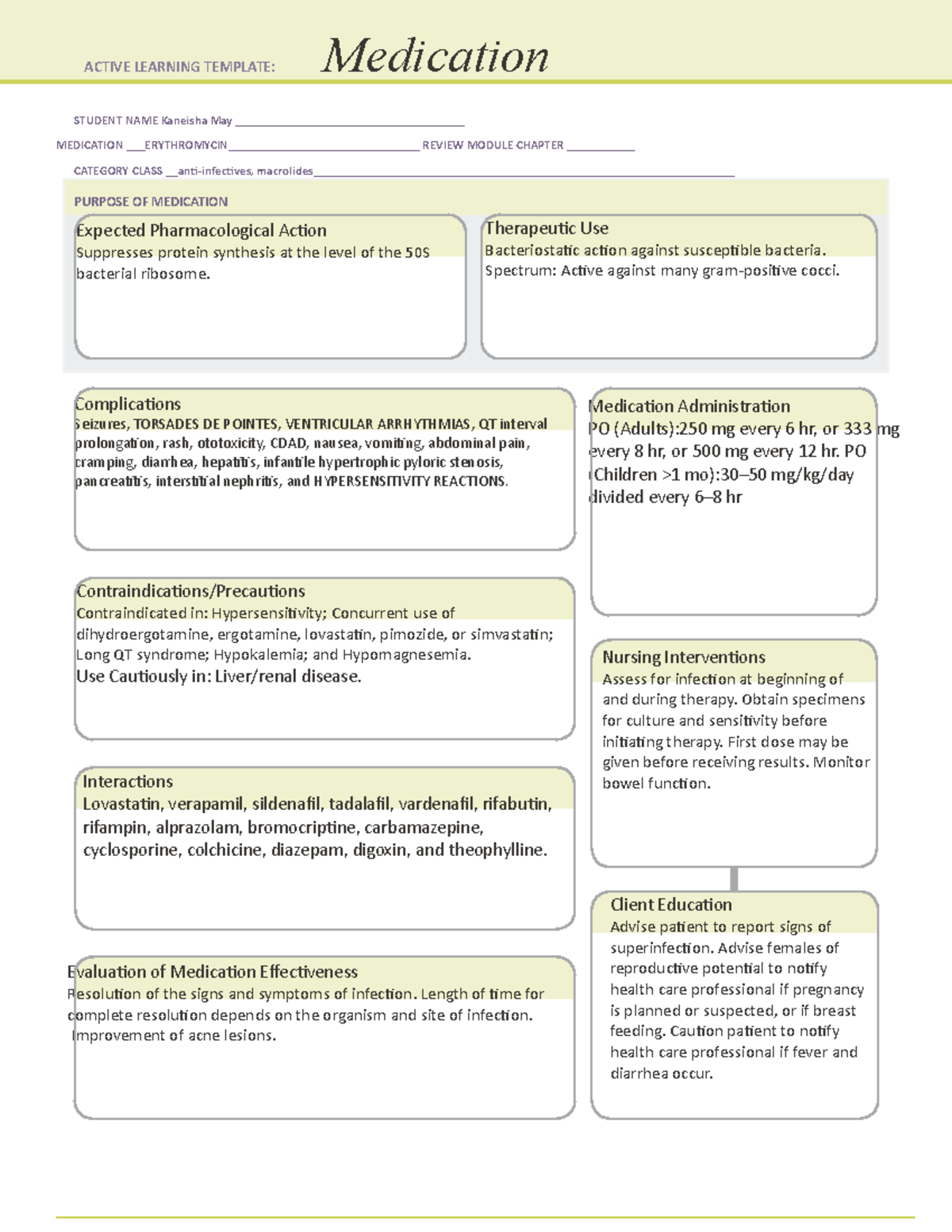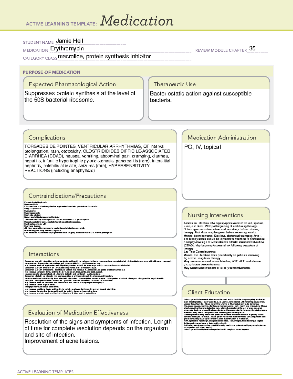 erythromycin pdf ACTIVE LEARNING TEMPLATE: Medication STUDENT NAME