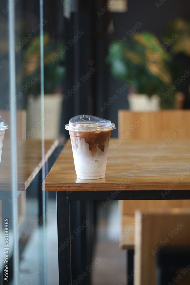 Closeup of Iced Caramel Macchiato at the coffee shop Caramel Macchiato