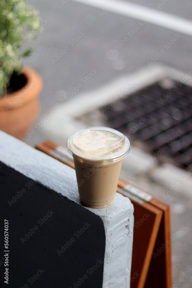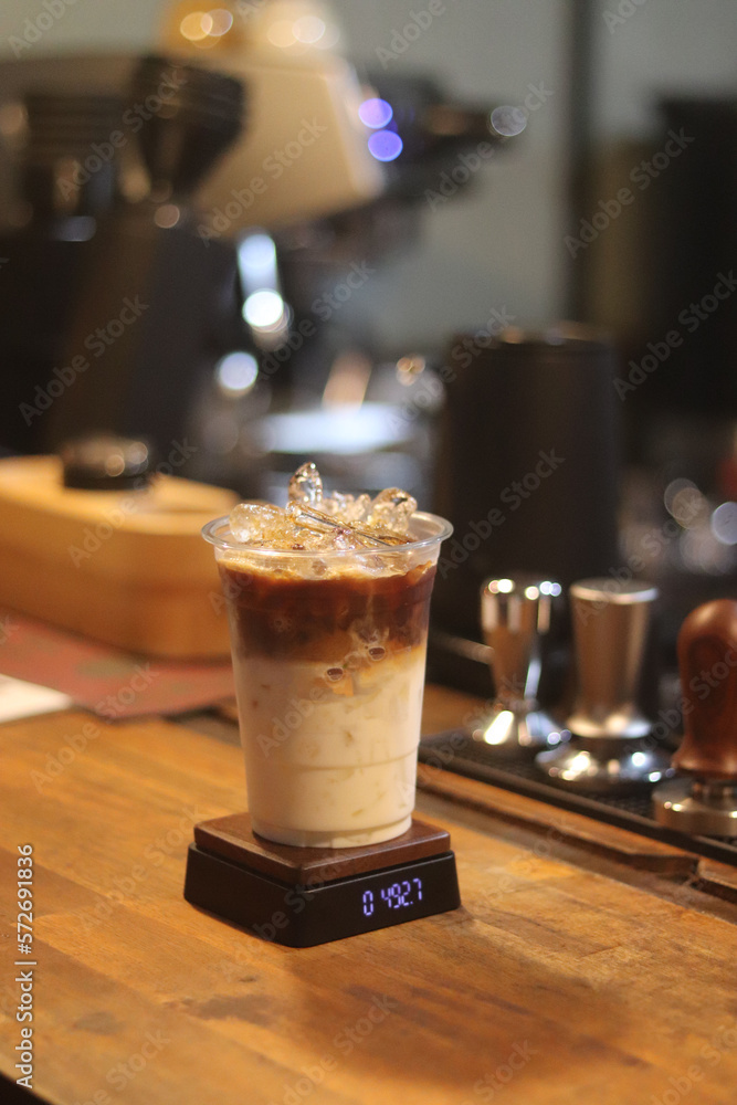 A cup of iced cappuccino coffee has the same ratio of espresso steamed