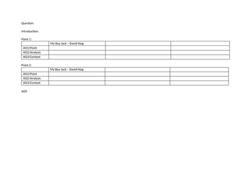 A Level English Literature Essay Planning Template for Paper 2 WW1