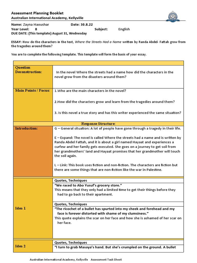 Essay Planning Template by Taylormade Teaching Australia TpT