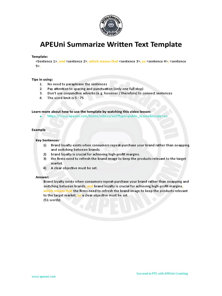 APEUni Summarize Written Text Template PDF Brand Economies