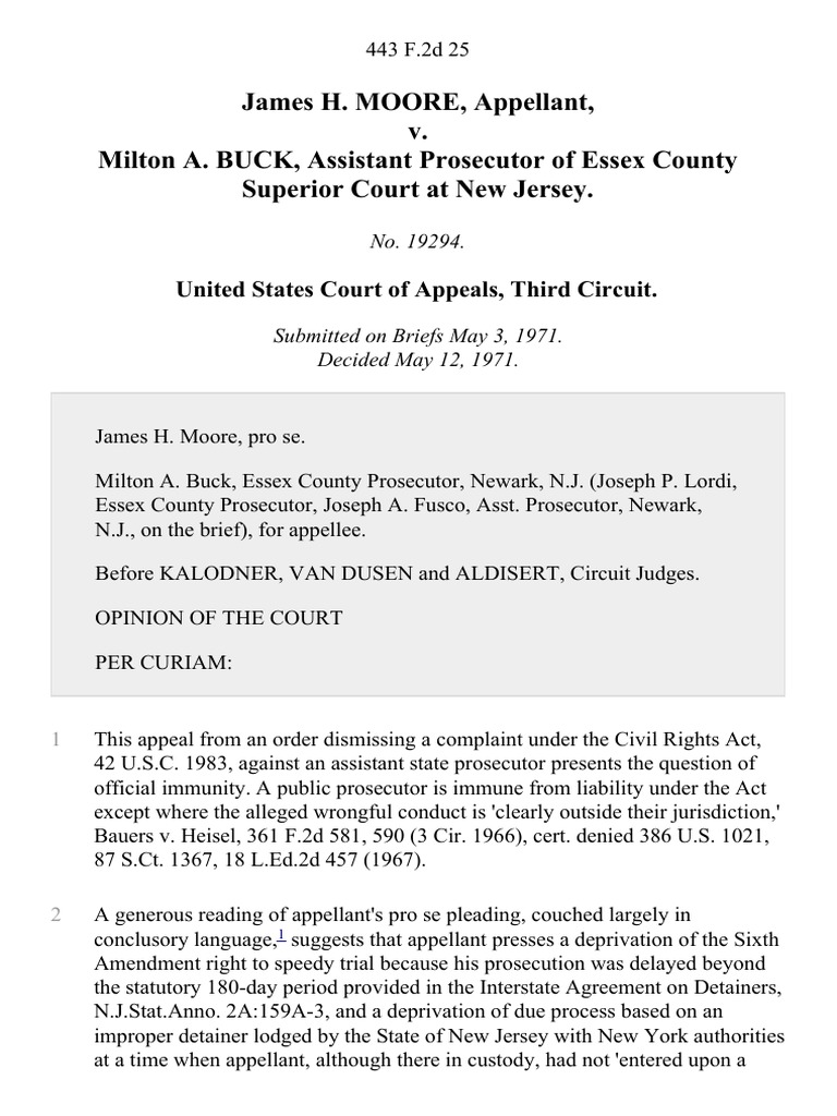 James H Moore v Milton A Buck Assistant Prosecutor of Essex County